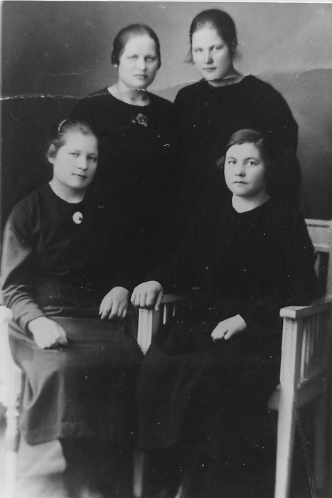 Kotiseutukokoelma0594 22.11.2015Täysi resoluutio (467 × 700) ← Edellinen Seuraava → Patakosken tyttöjä. Vas. Sigrid ja Laina Ylhäisi, Katri Peltola ja Alma Tamminen.