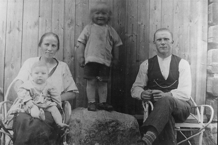 Kotiseutukokoelma0072B 22.11.2015Täysi resoluutio (700 × 467) ← Edellinen Seuraava → Aikoinaan ”käsityöläiskaduksi” kutsutun Hongiston Papinojantien varrella asuneet Alli ja Nestori Lintuaho sekä kaksi heidän vanhinta lastaan, Aimo (kivellä) ja Armas.
