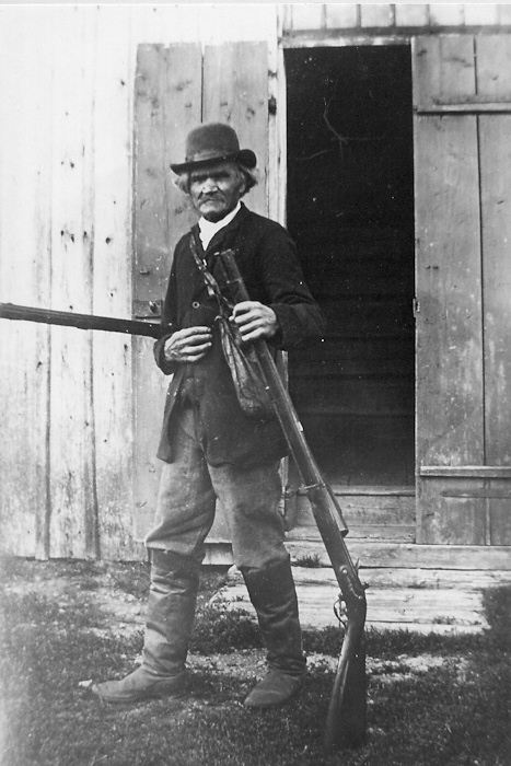 Kotiseutukokoelma0122 22.11.2015Täysi resoluutio (467 × 700) ← Edellinen Seuraava → Hakalan Ville Kattelukselta, muurari ja innokas metsästäjä tupansa edustalla lähdössä metsälle. Hänellä oli kolme asetta, Fransmannin kivääri, Ruotsin kivääri ja edessä näkyvä pitkä meriupseerin kivääri.