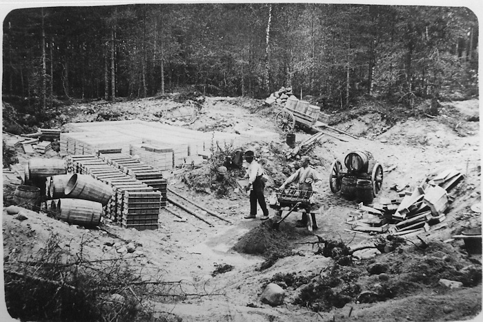 Kotiseutukokoelma0172 22.11.2015Täysi resoluutio (700 × 467) ← Edellinen Seuraava → Sementtitiilien tekoa Tauselan nummella. Tekijöinä luultavasti Uuno Tausa ja Nikolai Hariniemi.