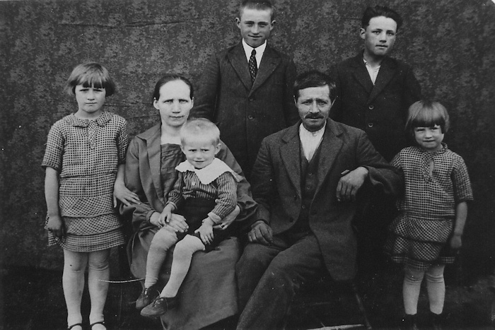Kotiseutukokoelma0240 22.11.2015Täysi resoluutio (700 × 467) ← Edellinen Seuraava → Verhonkulman Nokkalan perhekuva. Istumassa äiti Hilma polvellaan Erkki, sekä isä Eevert. Tyttäret ovat Anni (vas.) ja Eeva. Takana pojat Toivo ja Kaino.