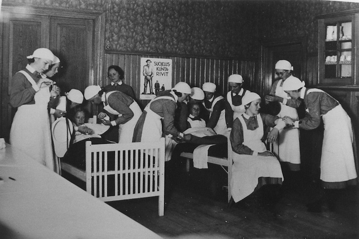 Kotiseutukokoelma0331 22.11.2015Täysi resoluutio (700 × 467) ← Edellinen Seuraava → Kosken lottien ensiapukurssit vanhan Nuortentuvan eteistilassa 1930-luvulla.