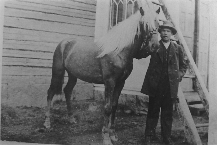 Kotiseutukokoelma0343 22.11.2015Täysi resoluutio (700 × 467) ← Edellinen Seuraava → Oskari Takatalo Tapalasta hevosineen talonsa edustalla.
