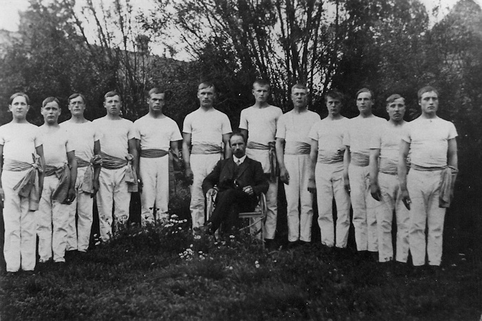 Näin uljas voimistelujoukkue oli Sorvastolla 1920-luvulla. Keskellä istumassa joukkueen johtaja, op. Frans Kokkinen, pojat vas. Vertti Väli-Urmas, Martti Tähtinen, Pauli Urmas, Aatu Mäntynen, Hugo Hyhkö, Uuno Hyhkö, Hannes Mäkinen, Eeli Rauhala, Mikko Lahtinen, Lauri Urmas, Eemil Seppälä ja Martti Urmas.