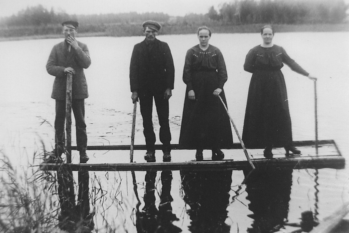 Kotiseutukokoelma0474 22.11.2015Täysi resoluutio (700 × 467) ← Edellinen Seuraava → Lautan varassa Liipolan järvellä ovat vas. lukien Emil Uotila, Aarne Saarinen, Helmi Saarinen ja Saima Uotila.