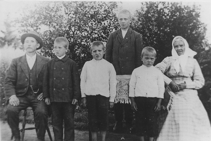 Kotiseutukokoelma0508 22.11.2015Täysi resoluutio (700 × 467) ← Edellinen Seuraava → Talolan Tolvin isäntä Kalle Tamminen poikiensa ja äitinsä seurassa. Pojat. vas. Uuno, Martti, Erkki ja Heimo; äidin nimi oli Amanda Mäkelä.